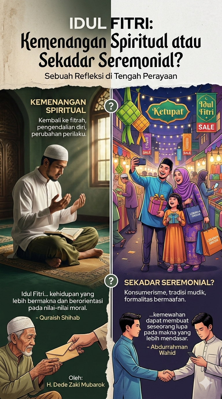 Namun, di tengah perubahan sosial dan dinamika kehidupan modern, muncul pertanyaan reflektif: apakah Idul Fitri masih dimaknai sebagai kemenangan spiritual, atau justru bergeser menjadi perayaan seremonial semata?